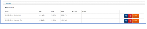- Allows you to add in practices for the team as well as view any practices from the season.
