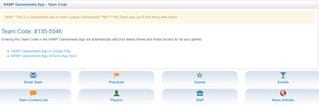 - You will have to enter this code on the Gamesheet App to have your team roster and games downloaded to your device