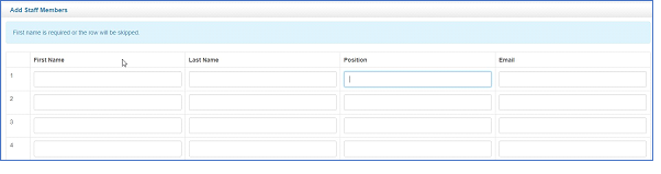 - An invite will be sent to added staff members if the invitation box is selected below the list of staff.